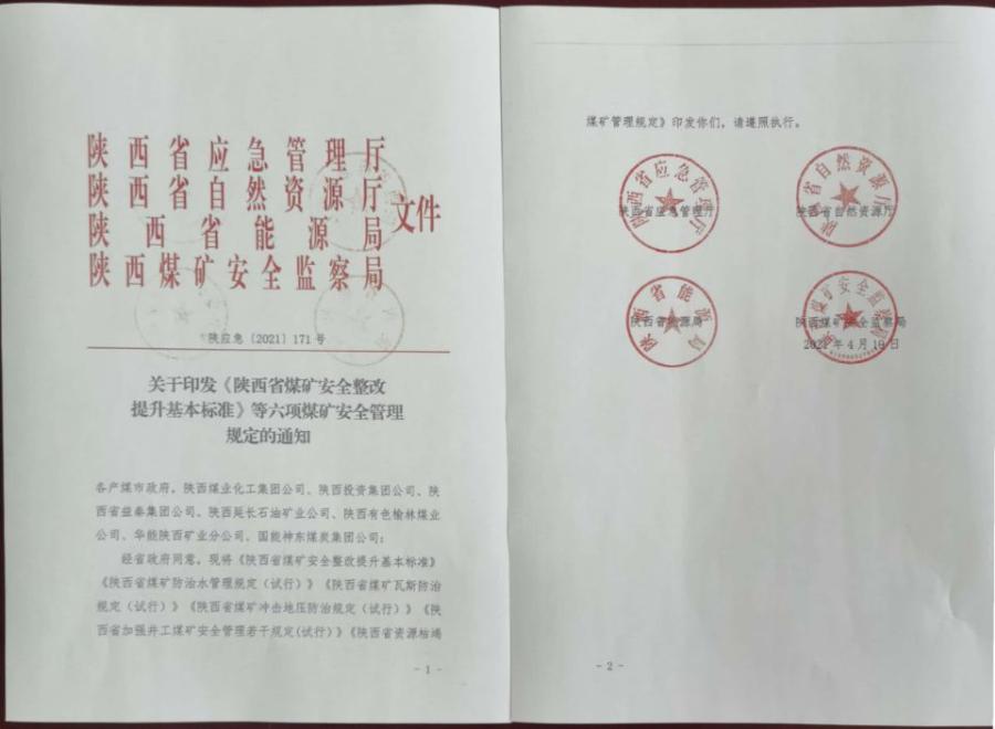 陜西省加強(qiáng)井工煤礦安全管理若干規(guī)定(試行)