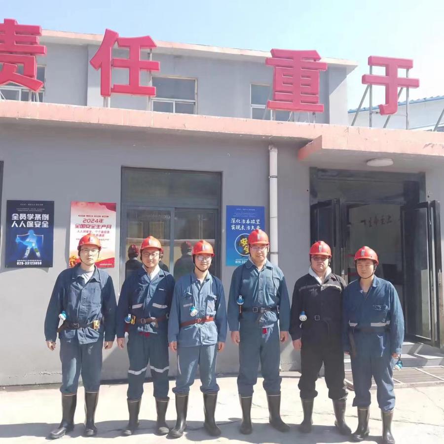 礦井采用斜井單水平開拓方式,工業(yè)場地內集中布置有主斜井、副斜井、一號回風立井、二號回風立井。主斜井井筒一側裝備帶式輸送機擔負礦井的原煤提升任務、另一側架設架空乘人裝置擔負設備檢修和人員提升任務,兼進風及安全出口;副斜井絞車房安裝提升機、井筒鋪設軌道和架設架空乘人裝置擔負礦井輔助提升任務,兼進風及安全出口;一號回風立井和二號回風立井為礦井專用回風井并聯(lián)回風,擔負全礦井回風任務,二號回風立井井筒裝備梯子間兼礦井安全出口。礦井采用單水平開拓,水平標高+770m,主斜井、副斜井落底后沿井田中部在4號煤層中布置東西向大巷。全礦井劃分為兩個盤區(qū),西部擴大區(qū)為41盤區(qū),東部老區(qū)為42盤區(qū)。41盤區(qū)已經回采結束,正在回收大巷煤柱。礦井采用中央并列式通風方式,抽出式通風方法,即主、副斜井進風,一號、二號回風立井并聯(lián)回風。井下主運輸采用帶式輸送機連續(xù)運輸方式,輔助運輸采用蓄電池機車牽引礦車或人車、柴油機單軌吊車運輸方式。井下采煤工作面采用傾斜長壁后退式采煤方法,綜采放頂煤工藝,全部垮落法管理頂板?,F場勘查時,井下裝備1個綜放工作面。截止2023年底,礦井剩余資源儲量10.284Mt,剩余可采儲量7.2473Mt,按礦井核定生產能力1.35Mt/a,考慮1.3的儲量備用系數計算,礦井剩余服務年限4.1a。