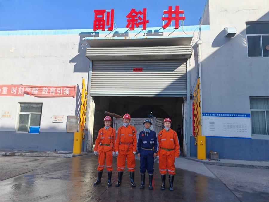礦井采用斜井多水平開(kāi)拓。地面工業(yè)場(chǎng)地共布置3條井筒,主斜井井筒裝備帶式輸送機(jī)擔(dān)負(fù)礦井的原煤提升任務(wù),兼進(jìn)風(fēng)及安全出口;副斜井井筒運(yùn)行無(wú)軌膠輪車(chē)擔(dān)負(fù)礦井的輔助提升任務(wù),兼進(jìn)風(fēng)及安全出口;回風(fēng)斜井為礦井專(zhuān)用回風(fēng)井,兼安全出口。全井田共劃分為兩個(gè)開(kāi)采水平,一水平開(kāi)采2-2、3-3、4-3煤層,主水平設(shè)在3-3煤層中,水平標(biāo)高+1155m,二水平設(shè)在5-2煤層中,開(kāi)采5-2煤層,水平標(biāo)高+1060m。井下在3-3煤層中沿南北方向布置一水平主運(yùn)、輔運(yùn)和回風(fēng)三條大巷,在4-3煤層中沿南北方向布置輔助水平主運(yùn)、輔運(yùn)和回風(fēng)三條大巷。全井田共劃分為6個(gè)盤(pán)區(qū),2-2和3-3煤層各自劃分為1個(gè)盤(pán)區(qū),4-3和5-2煤層以大巷為界劃分為2個(gè)盤(pán)區(qū),西部為一盤(pán)區(qū),東部為二盤(pán)區(qū)。煤層間采用下行開(kāi)采順序,一水平2-2、3-3煤層已開(kāi)采完畢,開(kāi)采4-3煤層和5-2煤層時(shí),開(kāi)采順序?yàn)橄炔梢槐P(pán)區(qū),再采二盤(pán)區(qū),目前開(kāi)采一水平4-3煤層一盤(pán)區(qū)。礦井采用中央并列式通風(fēng)方式,抽出式通風(fēng)方法,主、副斜井進(jìn)風(fēng),回風(fēng)斜井回風(fēng)。井下主運(yùn)輸采用帶式輸送機(jī)連續(xù)運(yùn)輸方式,輔助運(yùn)輸采用防爆無(wú)軌膠輪車(chē)直達(dá)運(yùn)輸方式。井下采煤工作面采用走向長(zhǎng)壁一次采全高綜合機(jī)械化采煤法,全部垮落法管理頂板。現(xiàn)場(chǎng)勘查時(shí),井下裝備1個(gè)綜采工作面和2個(gè)綜掘工作面達(dá)到礦井設(shè)計(jì)生產(chǎn)能力。截止2024年12月31日,礦井保有資源儲(chǔ)量30.943Mt,剩余可采儲(chǔ)量11.214Mt,按礦井設(shè)計(jì)生產(chǎn)能力0.90Mt/a,考慮1.3的儲(chǔ)量備用系數(shù)計(jì)算,礦井剩余服務(wù)年限9.6a。