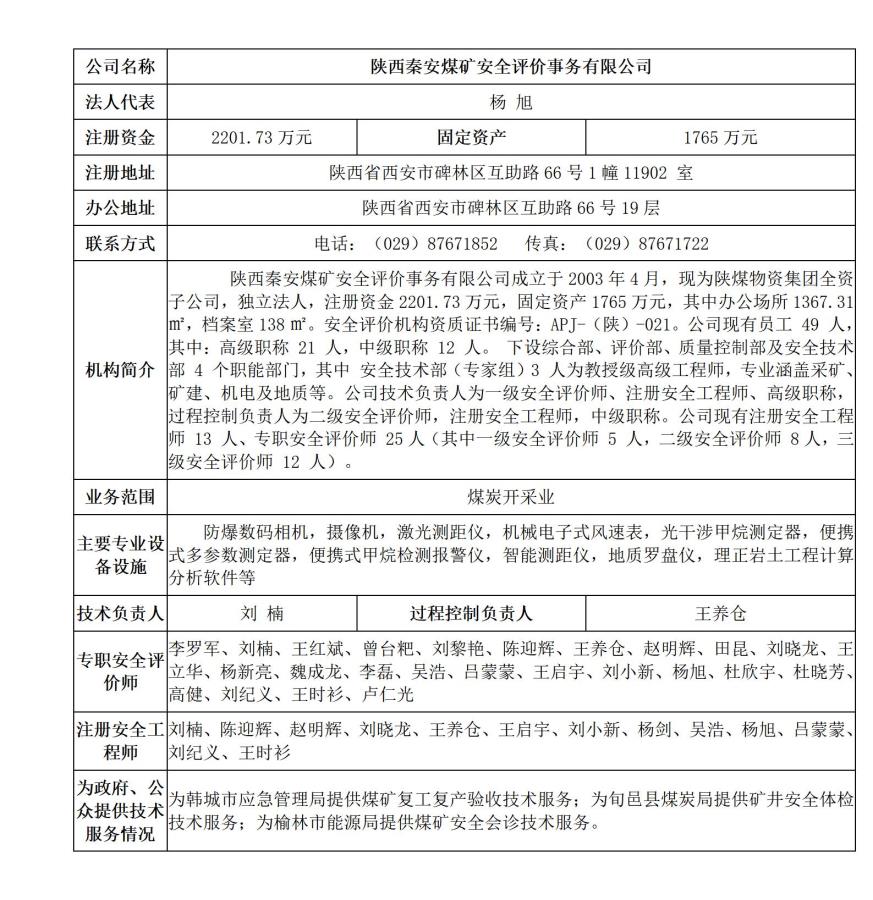 Copyright ? 2008-2020 陜西秦安煤礦安全評(píng)價(jià)事務(wù)有限公司 All Rights Reserved.